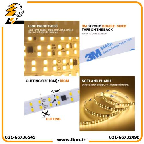 ویژگی‌ های کلیدی ریسه ال‌ ای‌ دی ۲۲۰ ولت ۱۲۰ ال‌ ای‌ دی عرض ۱۲ میلی‌ متر دولاین